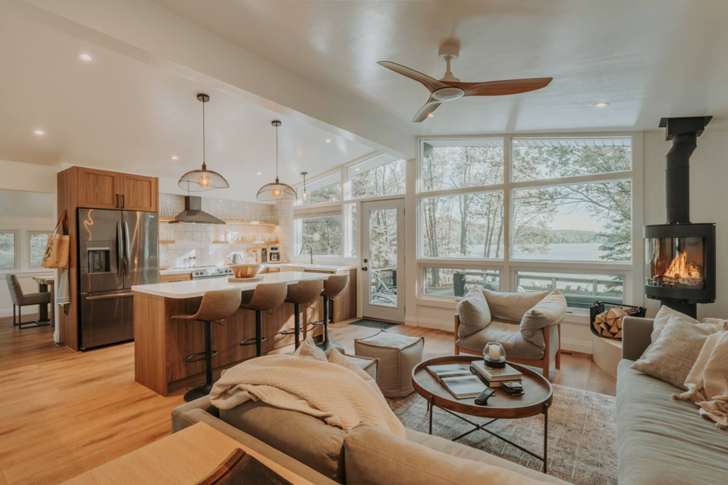 Cozy up this winter at Shea on the Bay, where star-filled nights in the hot tub and fireside evenings set the tone for a true Muskoka escape. Inside, unwind on the plush sofa with Netflix, gather around board games, or prepare a memorable meal in the fully equipped kitchen, all framed by tranquil lake views. The perfect winter retreat for creating lasting memories with family and friends.